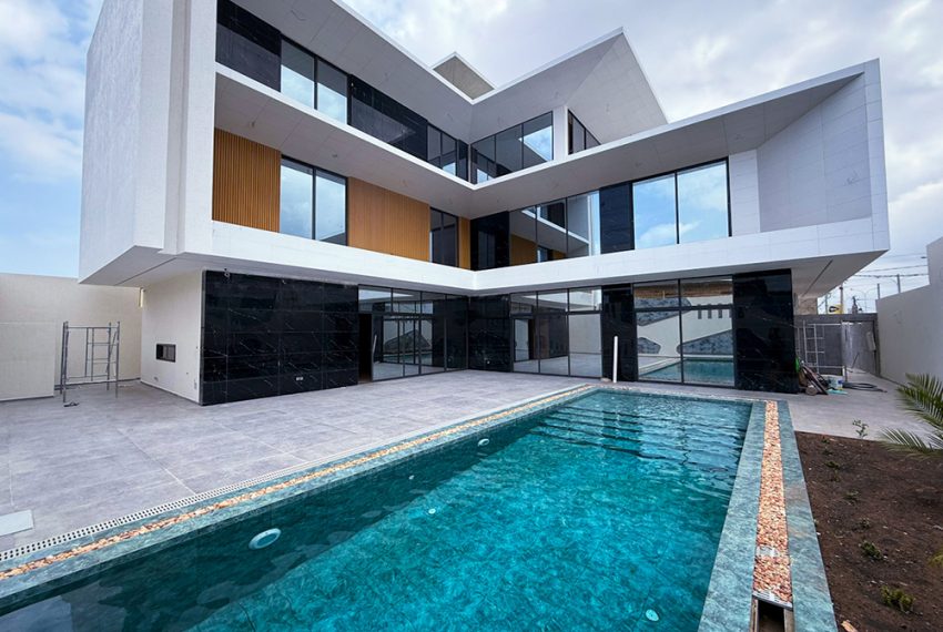 Le bâtiment principal abrite deux salons spacieux et six chambres confortables, idéales pour une grande famille ou un usage mixte (habitation + bureau). Un garage fermé peut accueillir deux véhicules, tandis qu’un garage ouvert peut contenir plus de cinq voitures.