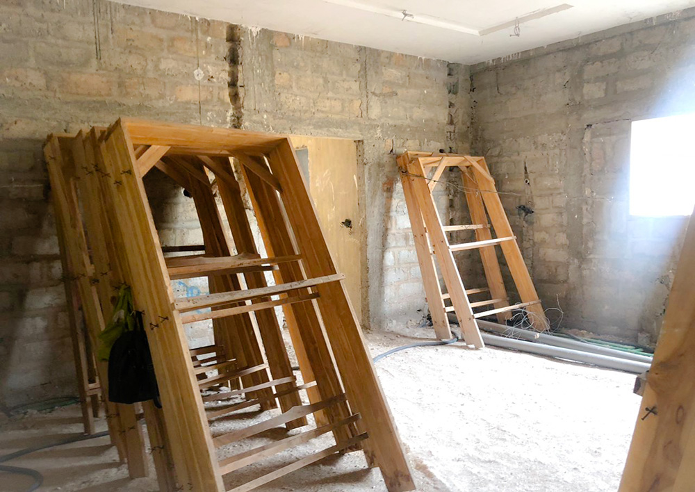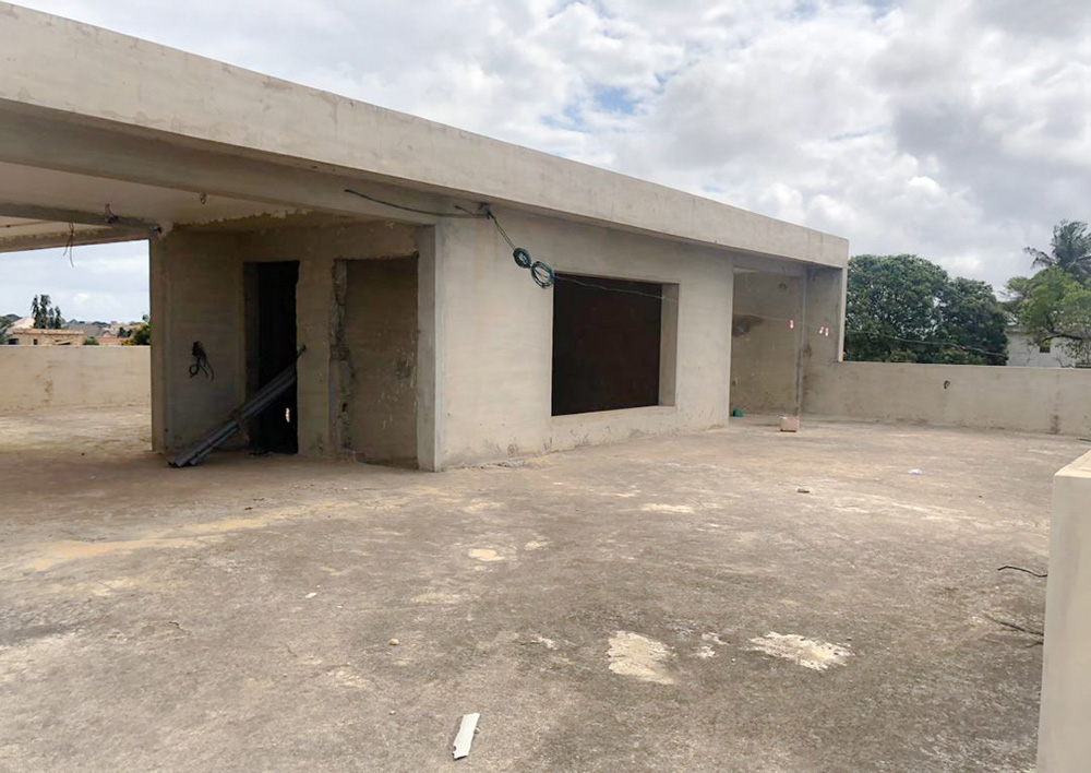La villa repose sur une superficie d’un lot, avec une structure déjà avancée.
